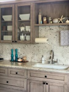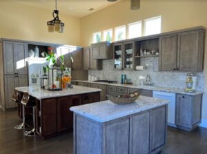This kitchen remodel in Granite Bay was kept classic to tie in with this older home. We used furniture style cream colored cabinetry as well as the presence of moldings and trims. The pendant lighting is formal and the floor classic. The color scheme is muted. We used classic subway tile for the backsplash and granite stone countertops.
